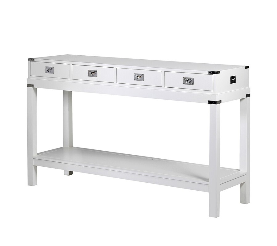 Jedinečná konzola z našej kolekcie Wielton Blanc predstavuje nadčasovú kombináciu klasickej konzoly so zásuvkami obohatenú o štýlové art-deco prvky. Konzola obdĺžnikového tvaru má okrem štyroch zásuviek ďalší odkladací priestor v podobe dosky na nosnej konštrukcii, s vrchnou časťou je prepojená štyrmi rovnými nohami. Konzola Wielton Blanc je preto veľmi praktická. Vďaka bielej farbe je možné ju veľmi ľahko kombinovať so širokou škálou iných farieb, a jednoduchý moderný dizajn robí tento kúsok naozaj univerzálnym. Vynikne rovnako ako v moderných, tak aj v luxusných či art deco interiéroch.