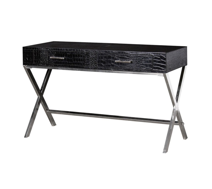 Dizajnová konzola Vittoria je skutočne jedinečným kúskom, ktorý zaujme už na prvý pohľad. Vyniká najmä svojím povrchom, ktorý je vyrobený z luxusne pôsobiacej imitácie krokodílej kože. V kombinácii s chrómovými nohami v tvare x vzniká skutočne originálny kúsok, ktorý oživí každú luxusne zariadenú modernú domácnosť! Konzola disponuje dvomi praktickými zásuvkami na uskladnenie menších predmetov. Kovové rukoväte ladia s konštrukciou a dotvárajú celý dizajn konzoly. Vďaka svojej univerzálnej farebnosti sa hodí do rôzno-farebne ladených priestorov a dá sa ľahko kombinovať, ideálne napríklad s modrou, zelenou či žltou. Svojím prevedením vynikne v luxusných predsieňach, halách, obývacích izieb či aj do hotelov alebo reštaurácií.