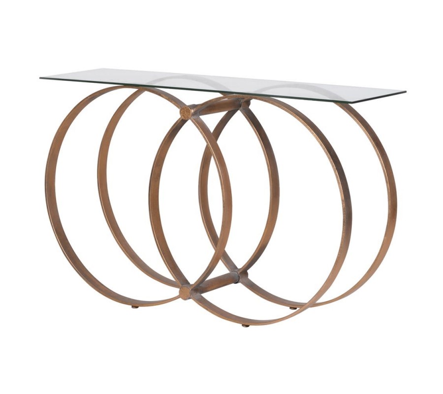 Jedinečná a nadčasová konzola Saldana je nádherným kúskom najmä vďaka kombinácii presklenného povrchu a kovoých nôh zlatej farby v tvare kruhu. Konzola Saldana pôsobí naozaj dizajnovo najmä kvôli nežným líniám a dokonale zapadne do miestností ladených v art-deco štýle s definovanou výraznou farebnosťou. Konzolu Saldana ocenia najmä haly, predsiene a kancelárie s luxusnými dekoráciami zo skla, s pozláteným povrchom či dizajnové koberce s dlhým vlasom,