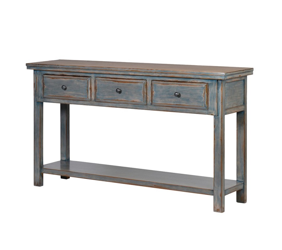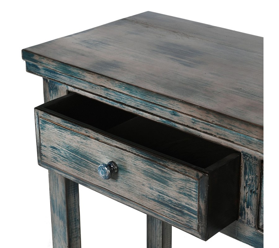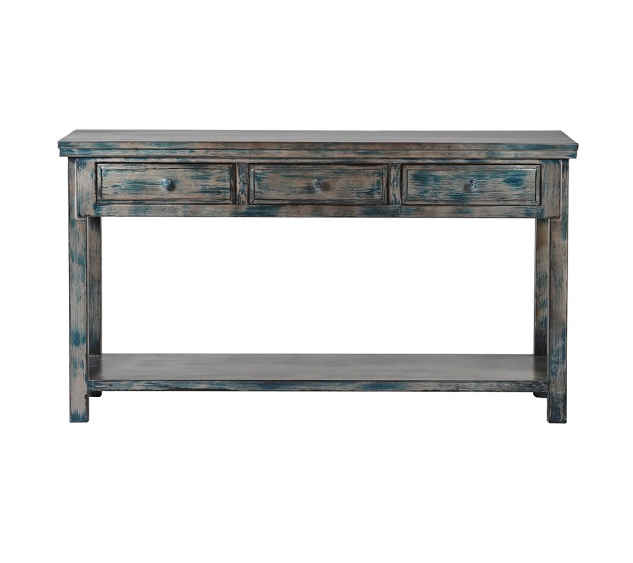 Štýlová vintage konzola Verda blue 160cm s tromi zásuvkami