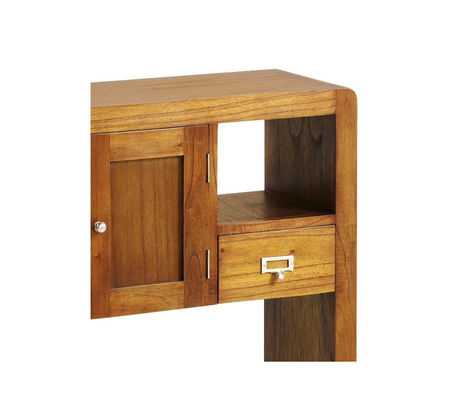 Štýlová luxusná konzola z kolekcie FLASH je vyrobená z masívneho koloniálneho dreva MINDI s povrchovou úpravou farby tmavého dubu. Je špecifická oblými hranami, ktoré môžu byž výhodou pre domácnosti s deťmi prípadne kde je nutné dbať na zvýšenú bezpečnosť. Z hľadiska kvality je to špička medzi koloniálnym nábytkom, ktorý sa hodí do každého priestoru.