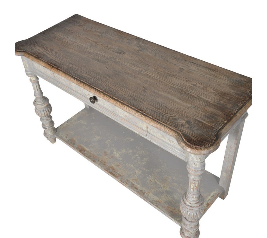 Vintage konzolový stolík Frezala z masívneho dreva so zásuvkou a poličkou 140cm