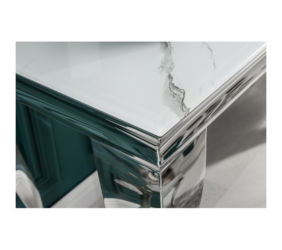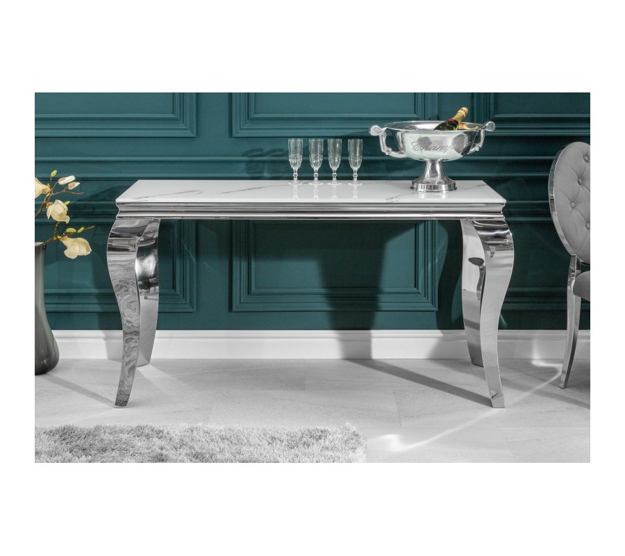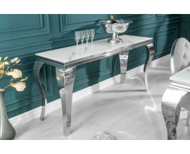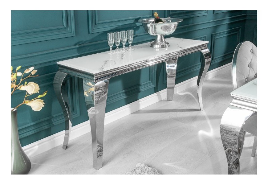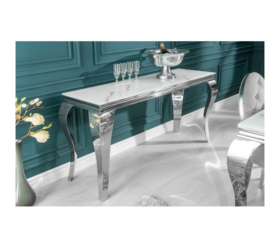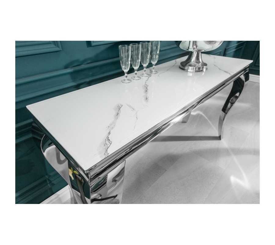 Chrómová luxusná baroková konzola Modern Barock s mramorovou doskou zo skla 145cm