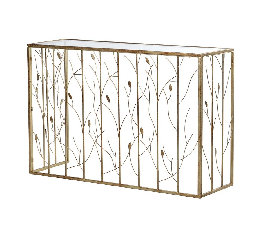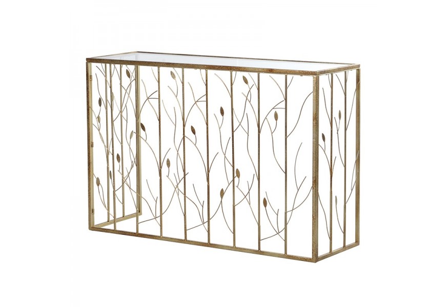 Dizajnová a  výnimočná konzola Satordi I je naozaj dokonalým predstaviteľom art-deco štýlu. Tento nevšedný kúsok v sebe spája nepopierateľný šmrnc a magické čaro naturálnych vzorov. Luxusné prevedenie je perfektne poznať na vkusnej kombinácii zlatého kovu a drobných lístkov. Povrchová doska konzoly Satordi je tvorená z jedného kusu sklo, ktoré dokáže miestnosť dokonale otvoriť.