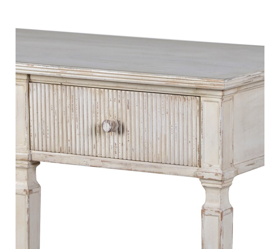 Provensálska konzola Celene Rode v bledom odtieni s dekoratívnym vyrezávaním a zásuvkami 175cm