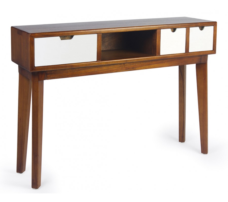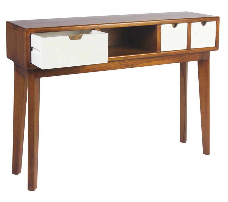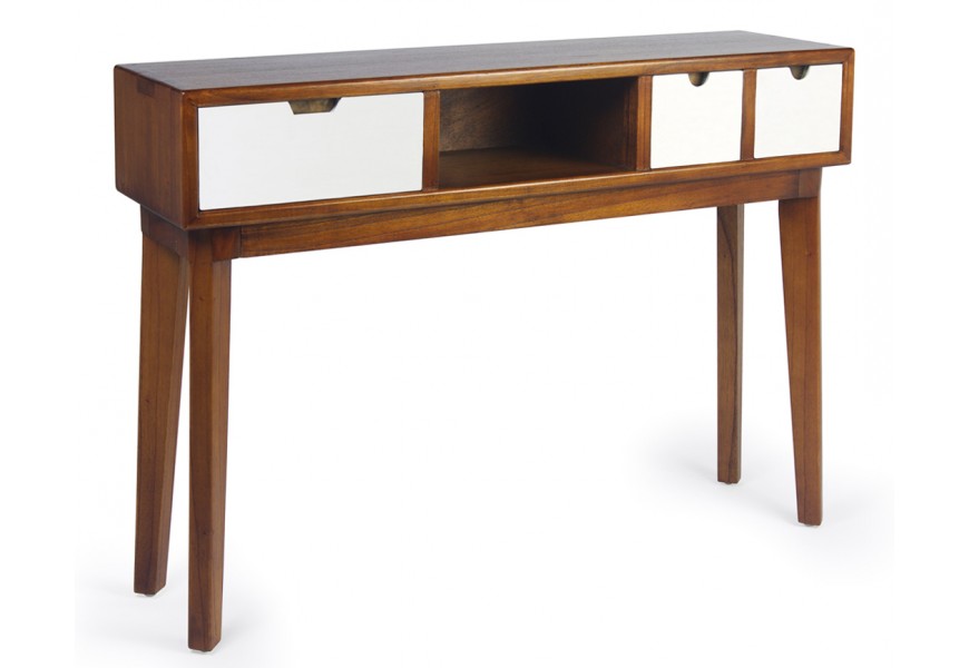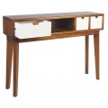 Luxusný hnedý konzolový stolík Norse s bielymi zásuvkami z masívneho dreva mindi 110 cm