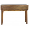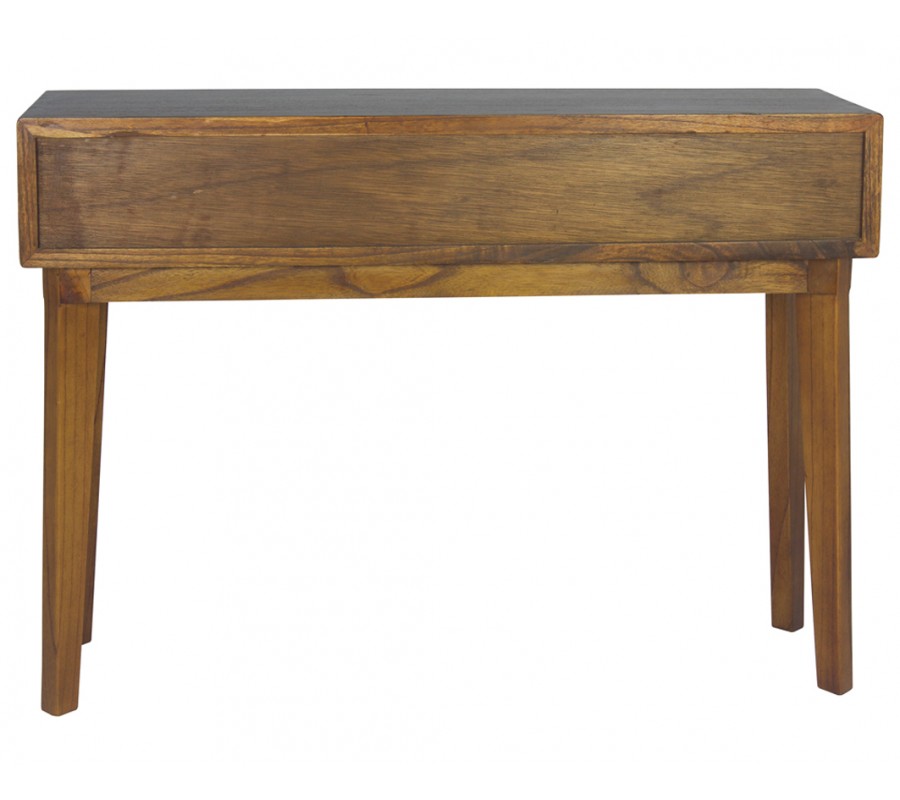 Konzolový stolík je vyrobený z kvalitného masívneho dreva mindi, ktoré je veľmi populárne kvôli svojej odolnosti a trvácnosti. Taktiež dodáva nábytku jedinečnú teplú hnedú farbu s odtieňmi žltej a červenej. Na rovných povrchoch stolíka vyniká tiež nádherná prirodzená kresba letokruhov.