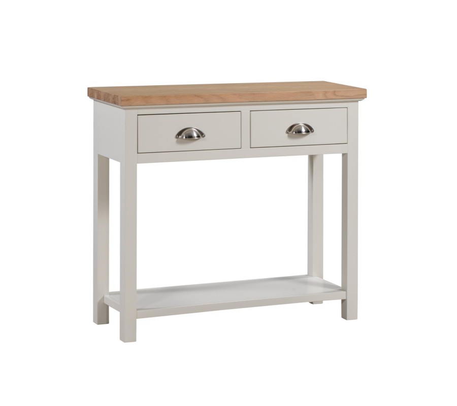 Dizajnová konzola z kolekcie nábytku Valence sa svojim vzhľadom hodí do vidiecky alebo provensálsky zariadených priestorov. Príjemná farebná kombinácia svetlého dreva, bielej so striebornými detailmi v podobe rúčok pôsobí veľmi vkusne a zároveň zabezpečuje jednoduchú kombinovateľnosť s inými kusmi nábytku a doplnkami.