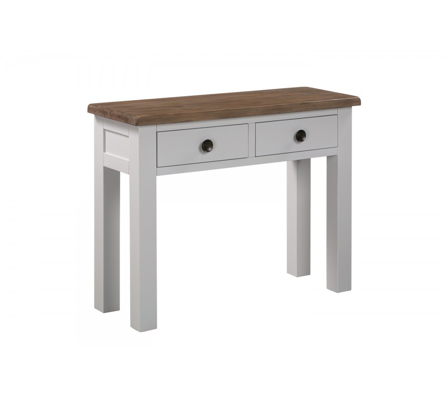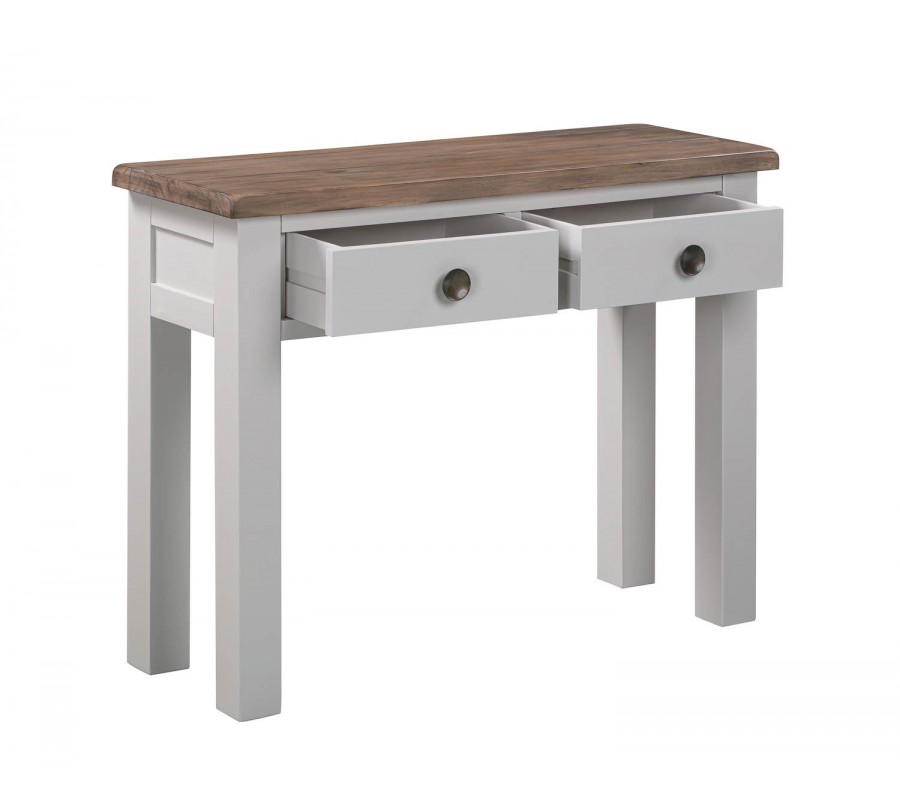 Provensálska masívna konzola Escapia v sivobielej farbe s hnedou povrchovou doskou 100cm
