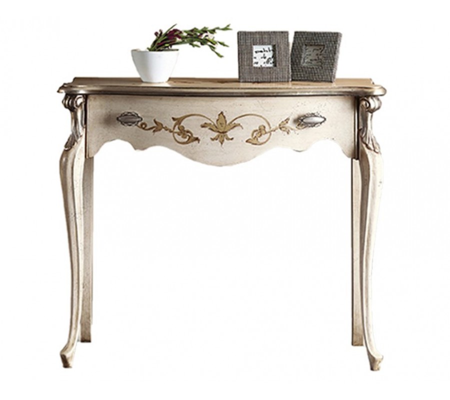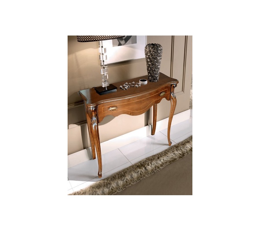 Exkluzívna konzola z našej kolekcie talianskeho nábytku Pasiones je kúskom vhodným pre všetkých milovníkov klasického a barokového štýlu. Je špecifická svojím elegantným prevedením z masívneho dreva, ktorého povrchová úprava je obohatená o precízne ručné vyrezávanie a vkusné ornamentálne zdobenie. Zaoblené nohy a elegantné línie vytvárajú krásny súlad s hladkým masívom a dodávajú konzole nezameniteľný starožitný nádych. Konzola taktiež disponuje praktickou zásuvkou s kovovými rukoväťami a zdobením s florálnymi motívmi. Na výber ponúkame viacero možných farebných prevedení dreva aj rukovätí, vďaka čomu máte možnosť vytvoriť si skutočne jedinečný a originálny kúsok vhodný do vášho interiéru. Konzola Pasiones vynikne predovšetým v luxusných halách, predsieňach či chodbách v kombinácii s rustikálnymi či barokovými doplnkami a dekoráciami. Odporúčame napríklad koberec s dlhým vlasom alebo štýlové ozdobné zrkadlo.