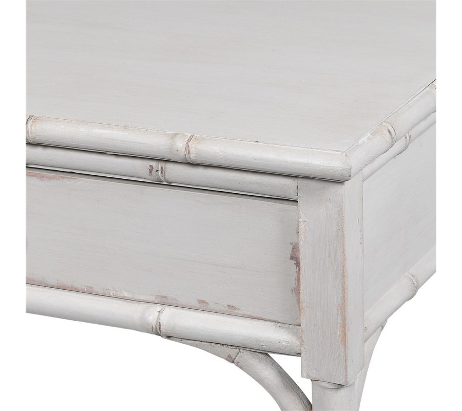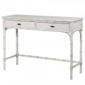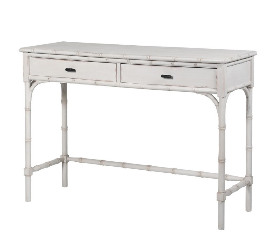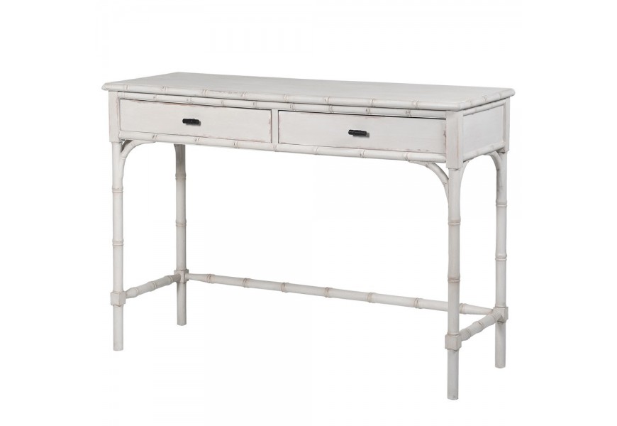 Provensálsky štýlový konzolový stolík Bayur s off white bambusovým dizajnom a dvoma zásuvkami 114cm