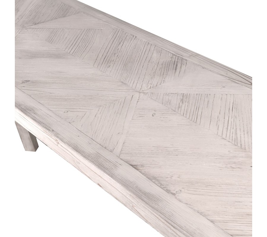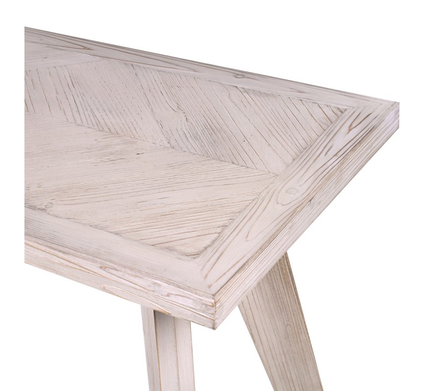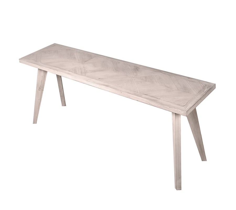 Vidiecky konzolový stolík Parquet z masívneho dreva vo vintage bielej farbe so šikmými nožičkami 180cm
