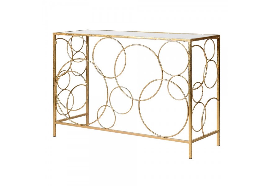 Art-deco dizajnová konzola Satordi s kovovou konštrukciou s geometrickým zdobením v zlatej farbe 120cm