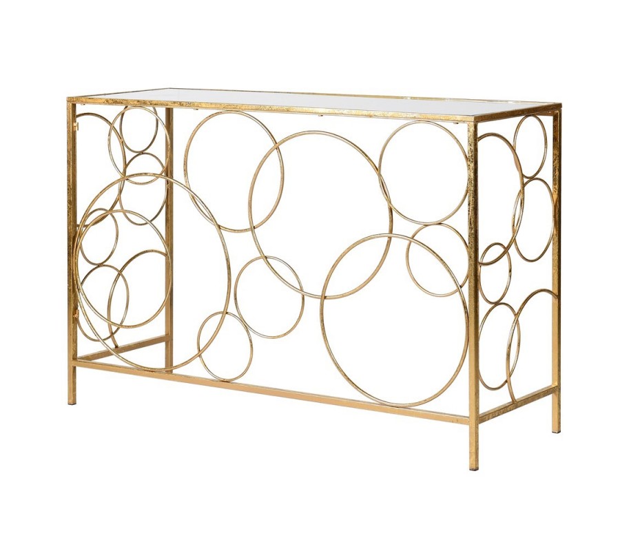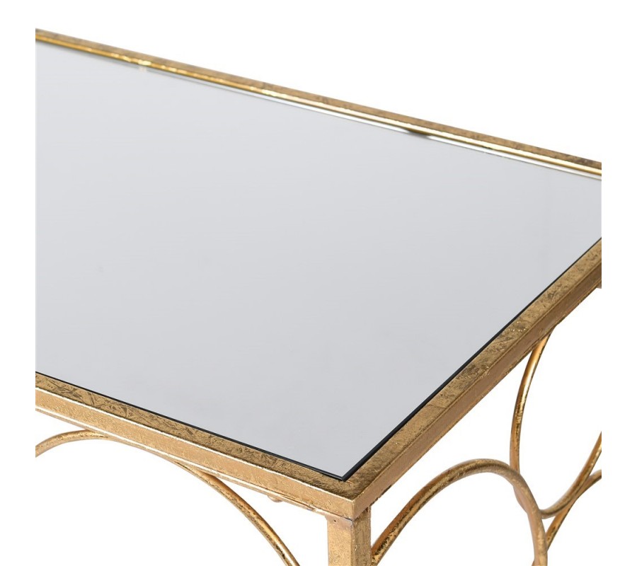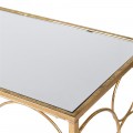 Dizajnová konzola Satordi je vhodným kúskom na rozžiarenie prázdneho chodbového priestoru, predsiene či vstupnej haly. Jej dominantným prvkom je kovová konštrukcia nesúca sa v žiarivej zlatej farbe, ktorá najmä v tmavšie ladených priestoroch vytvorí dojem luxusu a noblesy. Konštrukcia obdĺžnikového tvaru je z troch strán zdobená kruhovým geometrickým dizajnom, ktorý konzole dodáva moderný nadčasový vzhľad. Do konštrukcie je osadená sklenená povrchová doska so zrkadlovým efektom, ktorá dotvára nezameniteľný art-deco nádych. Vzdušný efekt konzoly dopomôže k optickému zväčšeniu priestorov a je tak vhodným adeptom aj na umiestenie do menších interiérov. Konzola Satordi vynikne predovšetkým v kombinácii s tmavými výraznými farbami, kreslom či sedačkou so zamatovým čalúnením a doplnkami z kovu či skla.