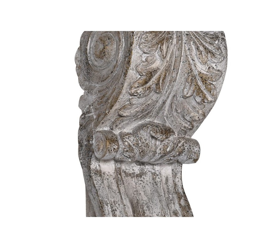 Exkluzívny konzolový stolík Angelo si vás získa svojím dizajnom nesúcim sa vo vintage štýle. Vďaka výrobe s využitím magnézia dostáva konzola jedinečný kamenný vzhľad so starožitným nádychom a patinou typickou pre vintage nábytok. Okrem toho je tiež zaujímavá aj svojím ozdobným vyrezávaním s detailnými prírodnými vzormi. Konzola Angelo je vhodná na upevnenie na stenu do predsiene, chodby či vstupnej haly. Svoje miesto si nájde aj vo vintage ladených hoteloch, recepciách firiem či iných reprezentatívnych priestoroch. Vďaka možnosti upevnenia na stenu pôsobí vzdušným dojmom a váš priestor aj napriek bohatému zdobeniu tak nebude pôsobiť preplneno. Konzolový stolík Angelo sa dá vhodne doplniť vintage zrkadlom, dekoráciami či štýlovým koberčekom.