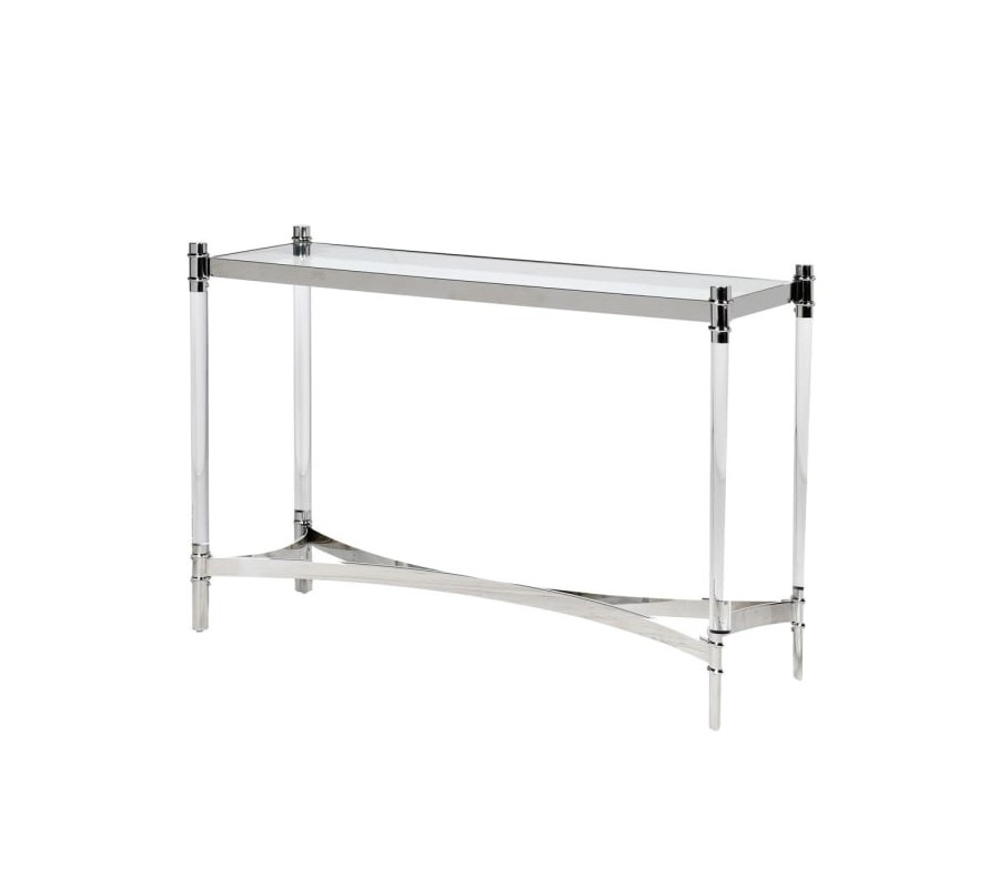 Konzolový stolík Andria je ideálnym kúskom na doplnenie moderne ladených predsiení, chodieb či vstupných hál. Je vyrobený z kovu a temperovaného skla, vďaka čomu získava vysokú kvalitu a dlhú životnosť. Vzdušný dizajn konzoly dopomôže opticky zväčšiť vaše priestory a zároveň do nich vnesie nadčasový nádych. Sklenená povrchová doska obdĺžnikového tvaru je osadená do kovovej konštrukcie so štýlovým zrkadlovým efektom. Jednoduchý vzhľad je ideálnym pre moderný interiér a dá sa vhodne kombinovať aj s farebnejšími kúskami. Konzolový stolík Andria odporúčame doplniť štýlovými dekoráciami a doplnkami ako napríklad nástenným zrkadlom s kovovým rámom alebo dizajnovou vázou na kvety.