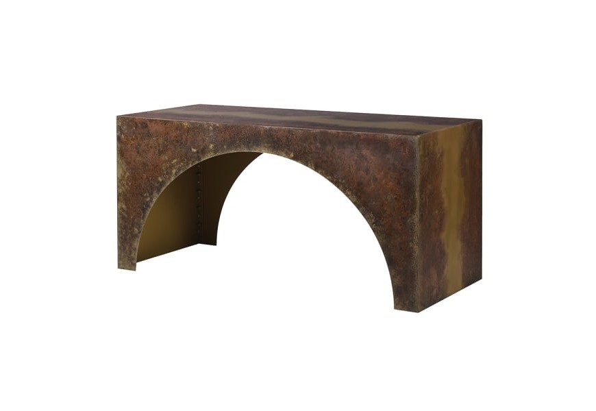 Industriálny konzolový stolík Oxidia z kovu v medenej farbe s patinou s efektom oxidácie 170cm