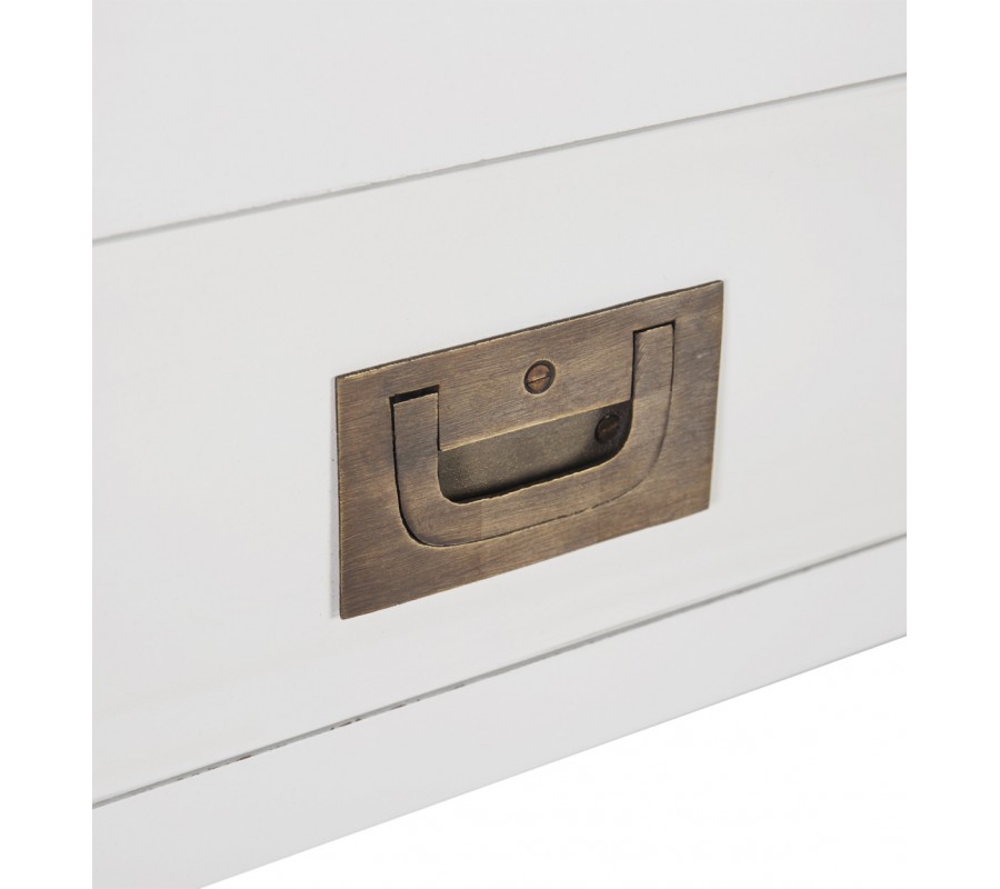 Luxusný konzolový stolík Blanc predstavuje kúsok, ktorý nádherne vynikne v klasicky i koloniálne ladených predsieňach. Jeho konštrukcia sa nesie v príjemnej bielej farbe, ktorá vaše priestory rozžiari a presvetlí. Bielu povrchovú úpravu kontrastne dopĺňajú akcenty v podobe bronzových kovových úchytov. Konzola ponúka úložný priestor v podobe troch praktických zásuviek a poličky v spodnej časti. Je vyrobená z masívneho dreva mindi, čo zaručuje prvotriednu kvalitu a dlhú životnosť. Prírodný materiál navyše vo vašom interiéri pomôže vytvoriť tú pravú atmosféru a teplo domova. Konzolový stolík Blanc krásne zažiari ako solitér vo vašej chodbe, predsieni či vstupnej hale. Dá sa jednoducho kombinovať so širokým spektrom farieb, odporúčame predovšetkým výrazné kontrastné farby alebo naturálne odtiene. Krásne tiež vynikne v kombinácii s bronzovými dekoráciami ladiacimi s úchytmi na zásuvkách.
