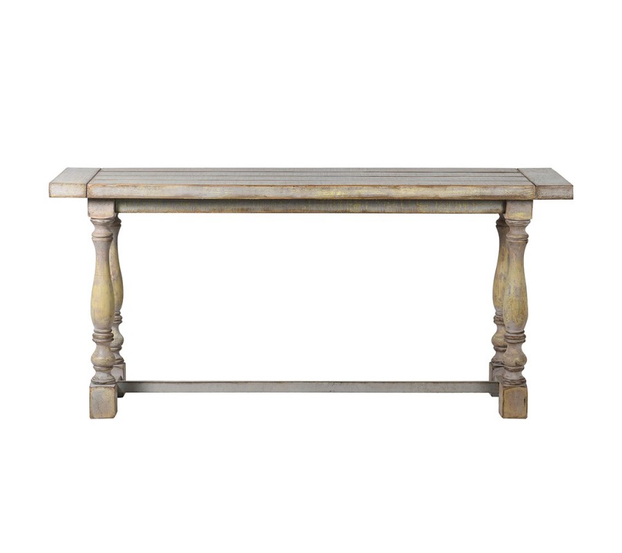 Rustikálny konzolový stolík Teulada z masívneho dreva hnedej farby s vyrezávanými nohami 180cm