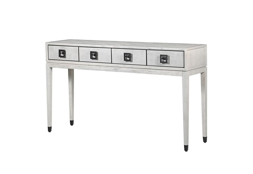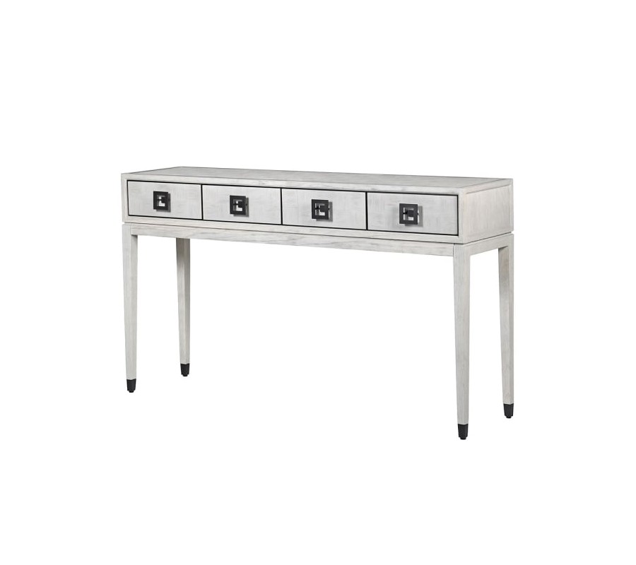 Moderný konzolový stolík Quadria Blanca z masívu v sivobielej farbe so štyrmi zásuvkami 160cm