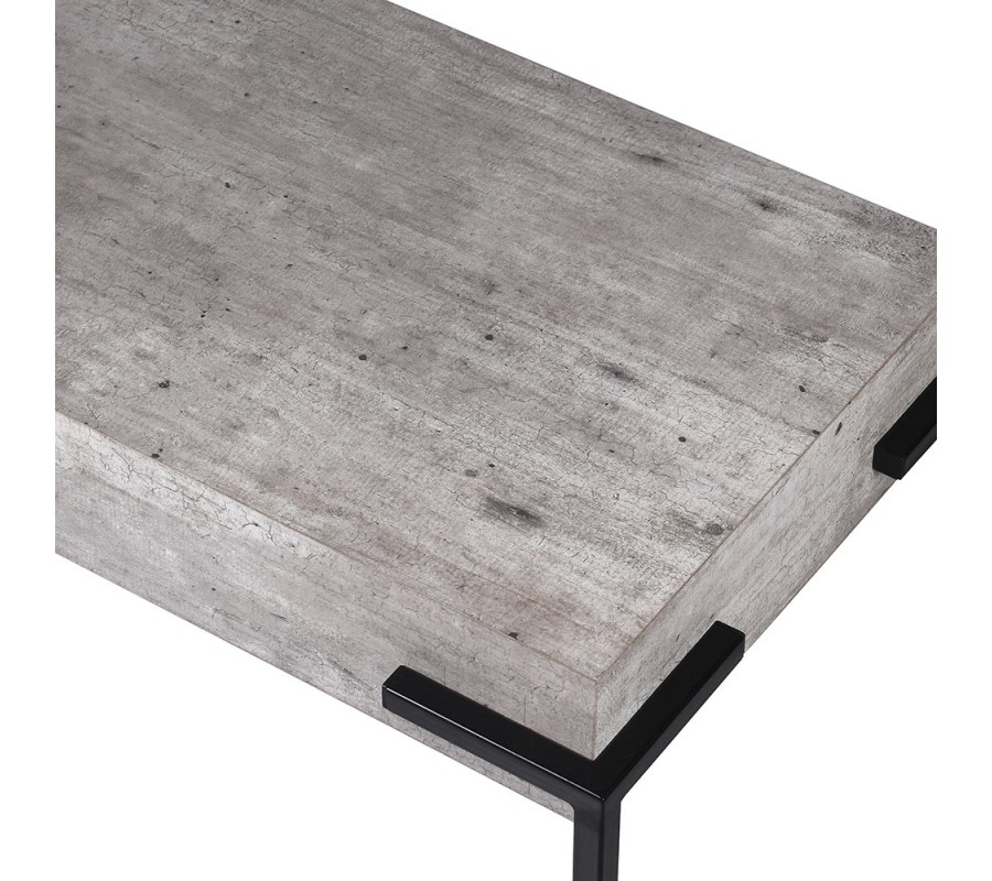 Betónový vzhľad v moderných interiéroch je čoraz viac žiadaný, preto Vám ponúkame konzolový stolík z kolekcie štýlového nábytku Maelynn, ktorý vďaka svojmu dizajnu perfektne vytvorí spomenutý dizajn. Štýlový konzolový stolík Maelynn disponuje vrchnou doskou z dreva MDF s ostrými hranami a so sivým betónovým vzhľadom, ktorý Vám dokáže vytvoriť nádych podobný prevedeniu továrnej haly. Čaro konzolového stolíku Maelynn spočíva v jeho "nedokončenom" prevedení, čo v spojení s čiernymi železnými nožičkami vytvorí industriálny nádych. Minimalistický, no zato veľmi moderný vzhľad konzolového stolíka Maelynn odporúčame kombinovať v moderných interiéroch so svetlými sedačkami a s čiernymi kovovými doplnkami a dekoráciami.