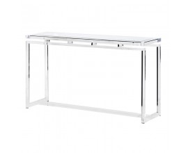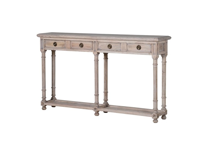 Rustikálny vyrezávaný konzolový stolík Nature z masívneho akáciového dreva svetlohnedej farby so štyrmi zásuvkami 148cm
