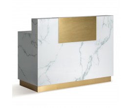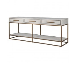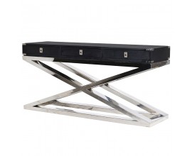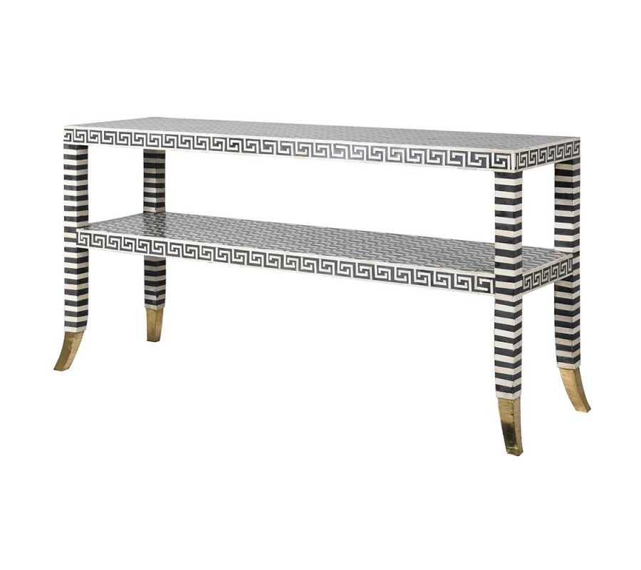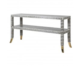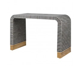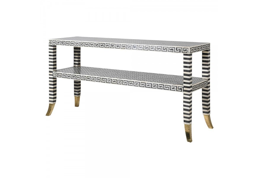 Luxusný art deco konzolový stolík Garibaldi v čierno-bielom prevedení s intarziou a zlatými nožičkami 164cm