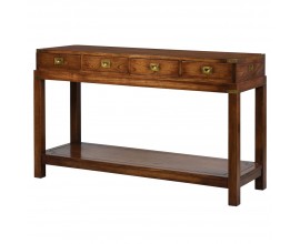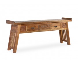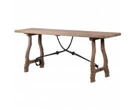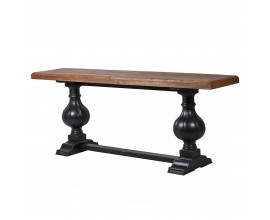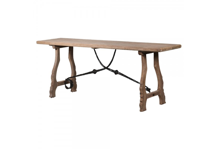 Vidiecky vyrezávaný konzolový stolík Woodley z masívu so zakrútenou železnou dekoráciou hnedý 220cm
