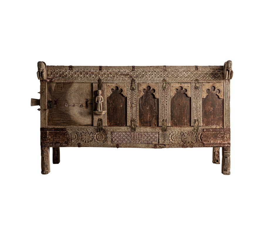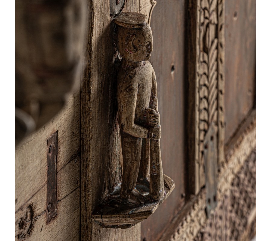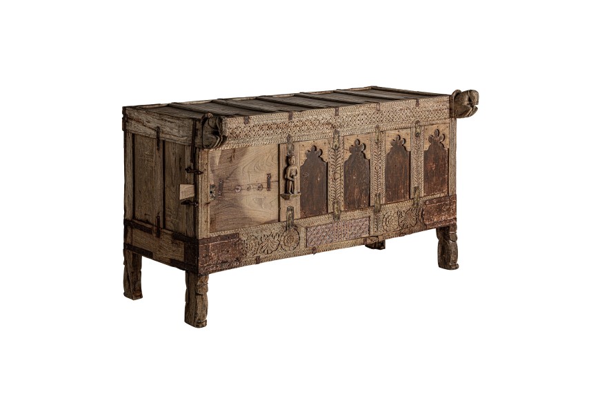 Exkluzívny konzolový stolík Salmee zaujme predovšetkým svojím nádherným bohatým zdobením v orientálnom štýle. Je vyrobený z kvalitného mangového masívu a nesie sa v prírodnej svetlohnedej farbe, čím vo vašich priestoroch vytvorí nádherný naturálny efekt a dopomôže k dotvoreniu útulnej atmosféry domova s exotickým nádychom kultúry ďalekého východu. Celý povrch konzoly Salmee je zdobený detailnými ručne vyrezávanými ornamentami, ktoré tomuto kúsku dodávajú autentický orientálny vzhľad a vďaka čomu je každý jeden kúsok jedinečným umeleckým dielom. Konzolový stolík okrem ornamentálneho vyrezávania zdobia aj podobizne koní a budhistického mnícha. Súlad exotického dreva s precíznym spracovaním a naturálnou farebnosťou vytvára unikátny kúsok, ktorý vás prenesie do luxusných palácov na ďaleký východ. Pre umocnenie orientálneho štýlu vyskúšajte konzolu Salmee kombinovať s farebnými prírodnými tkaninami, ďalšími kúskami z masívu a zlatými doplnkami. Vďaka nahrubo opracovanému materiálu a prírodnej farebnosti je vhodný aj do etno ladených interiérov.