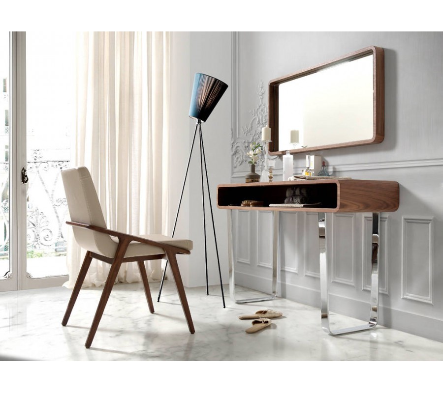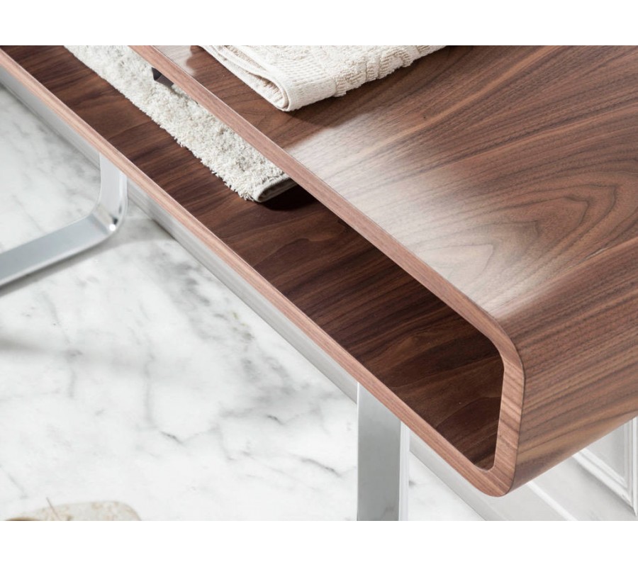 To, čo konzolový stolík Vita Naturale odlišuje od ostatných konzolových stolíkov na trhu, je jeho unikátna kombinácia chrómovaných nôh z nehrdzavejúcej ocele a spomenutého orechového dreva. Chrómové nohy nielenže dodávajú tomuto kúsku eleganciu a štýl, ale zároveň vytvárajú v miestnosti pocit priestrannosti, inovácie a sofistikovaného talianskeho dizajnu.
