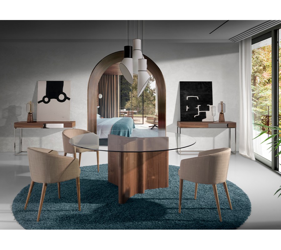 Luxusný konzolový stolík z kolekcie nábytku Forma Moderna prináša jedinečný taliansky dizajn s nádychom avantgardy a art-deco štýlu, a taktiež prírodné drevené prevedenie – to najlepšie z oboch svetov.