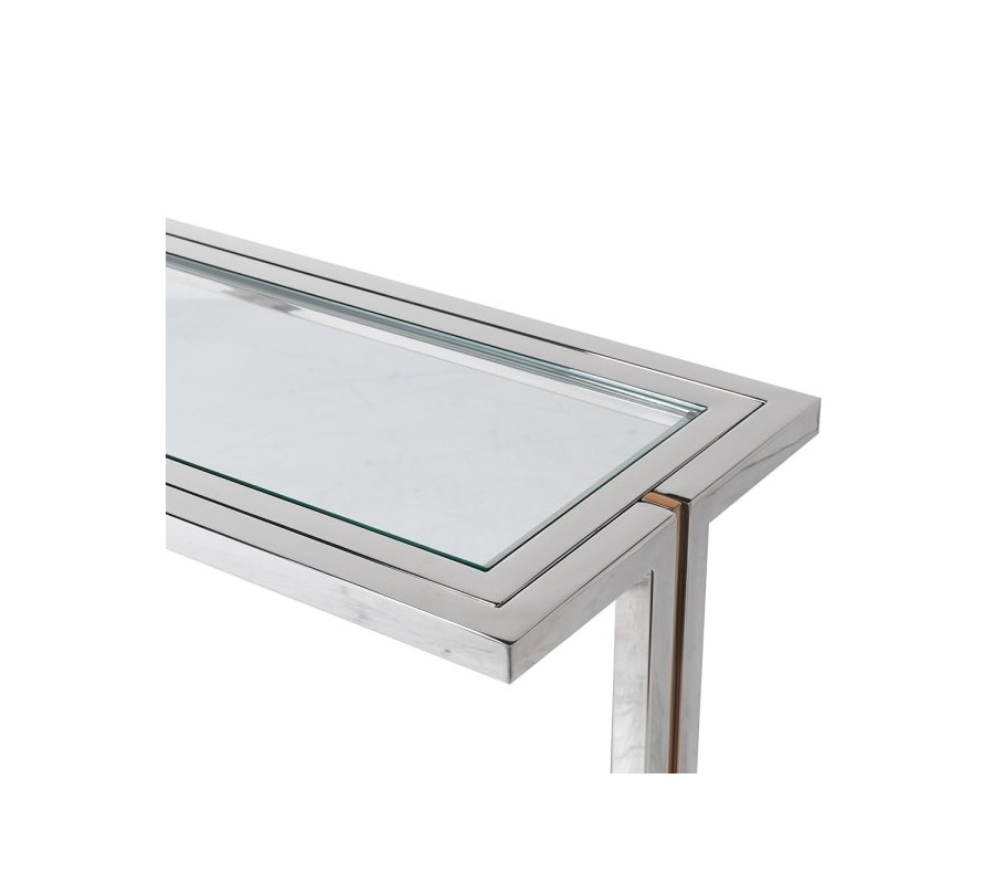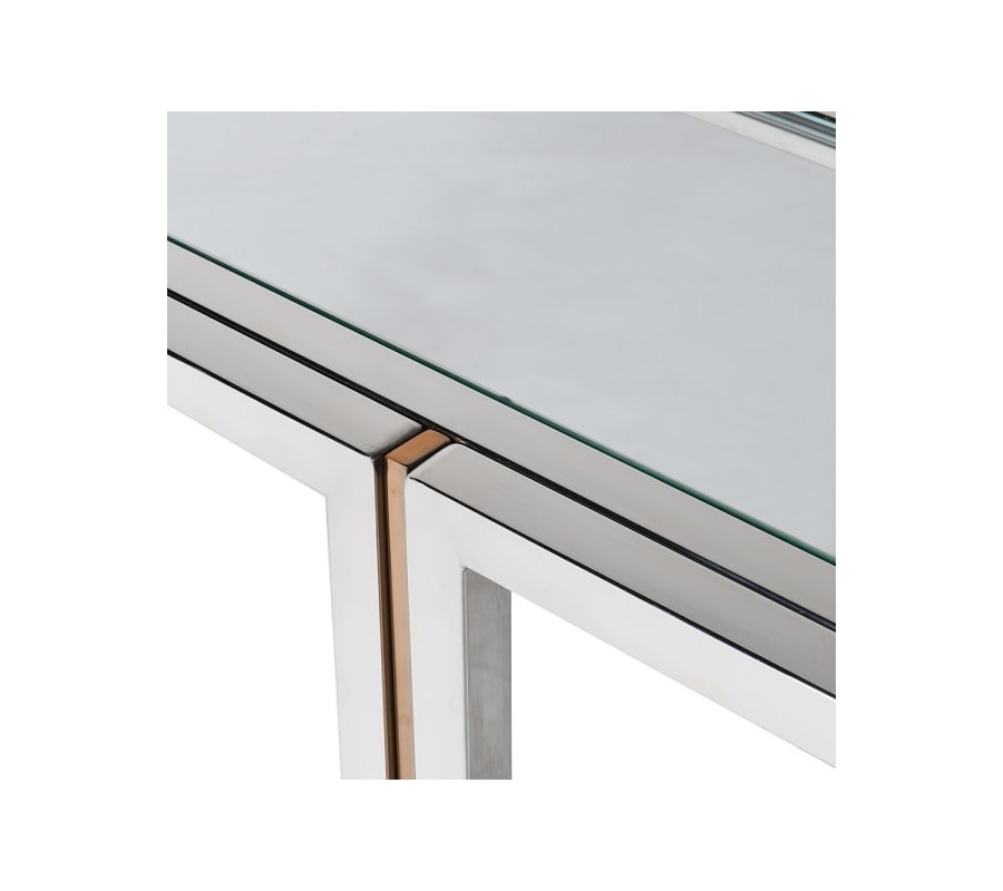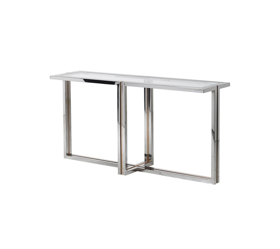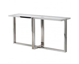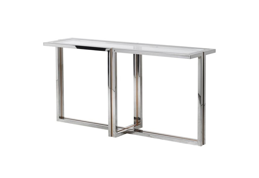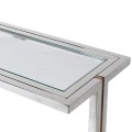 Dizajnový chrómový konzolový stolík Anesi striebornej farby so sklenenou vrchnou doskou 150cm