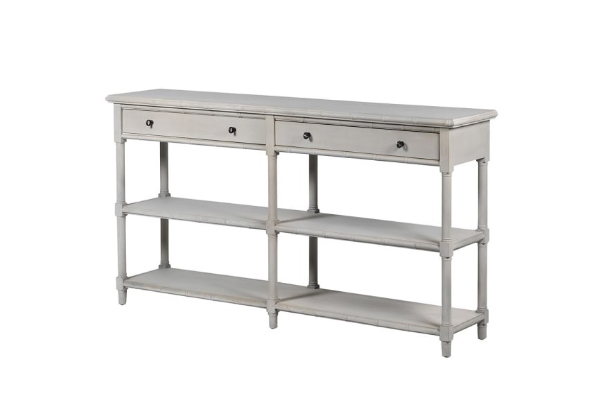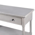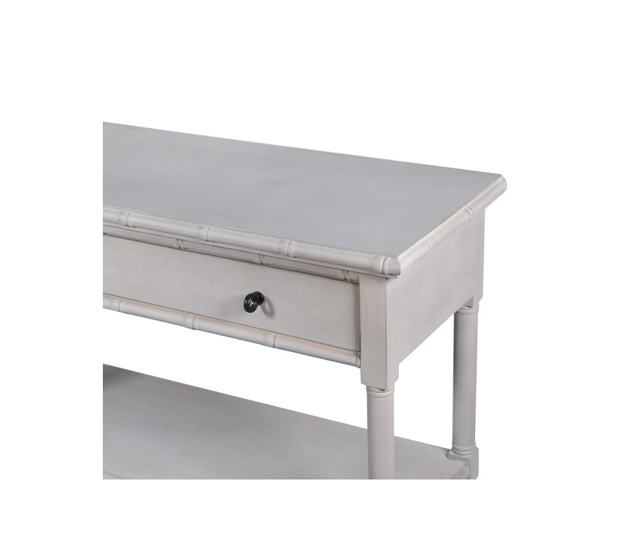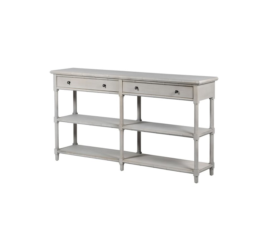 Provensálsky konzolový stolík Celene v sivobielom off white prevedení s poličkami a zásuvkami 160cm