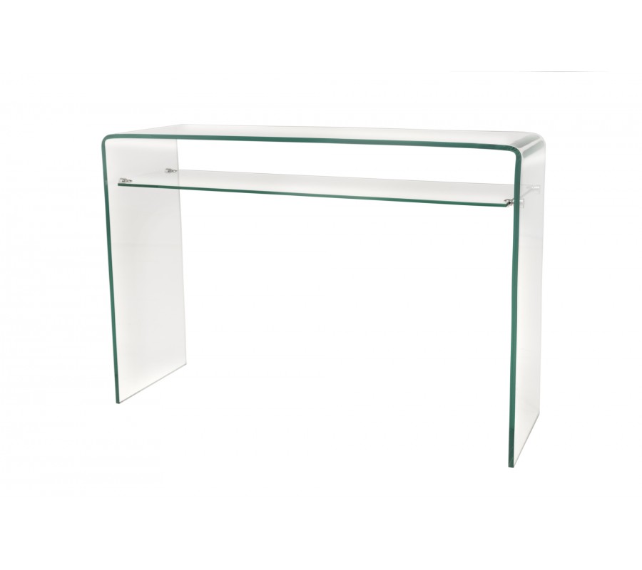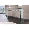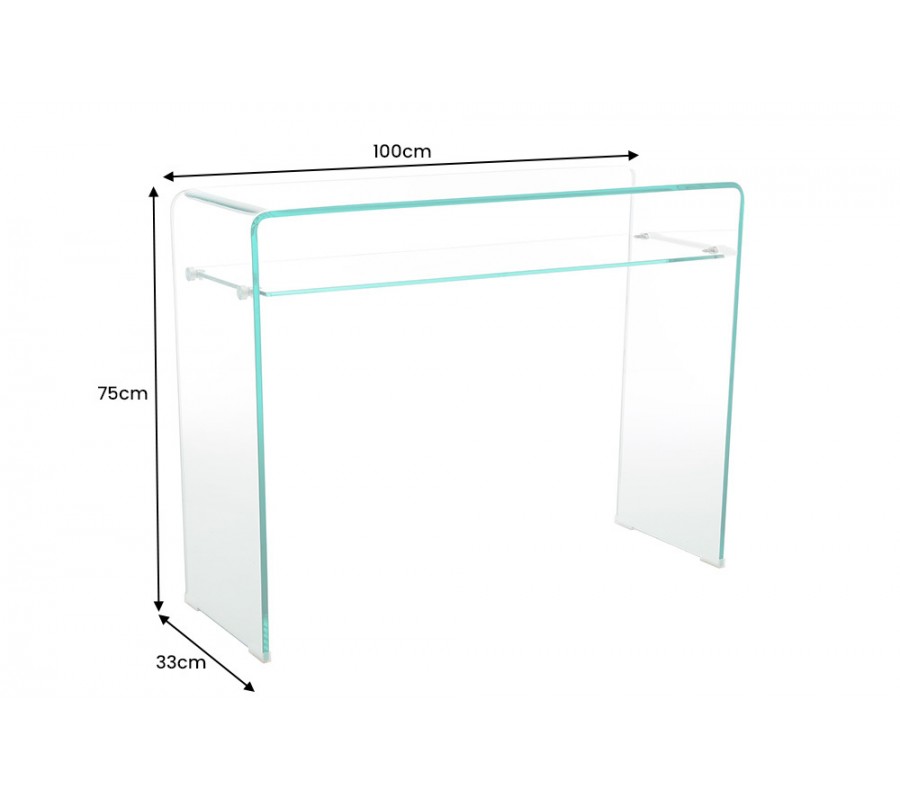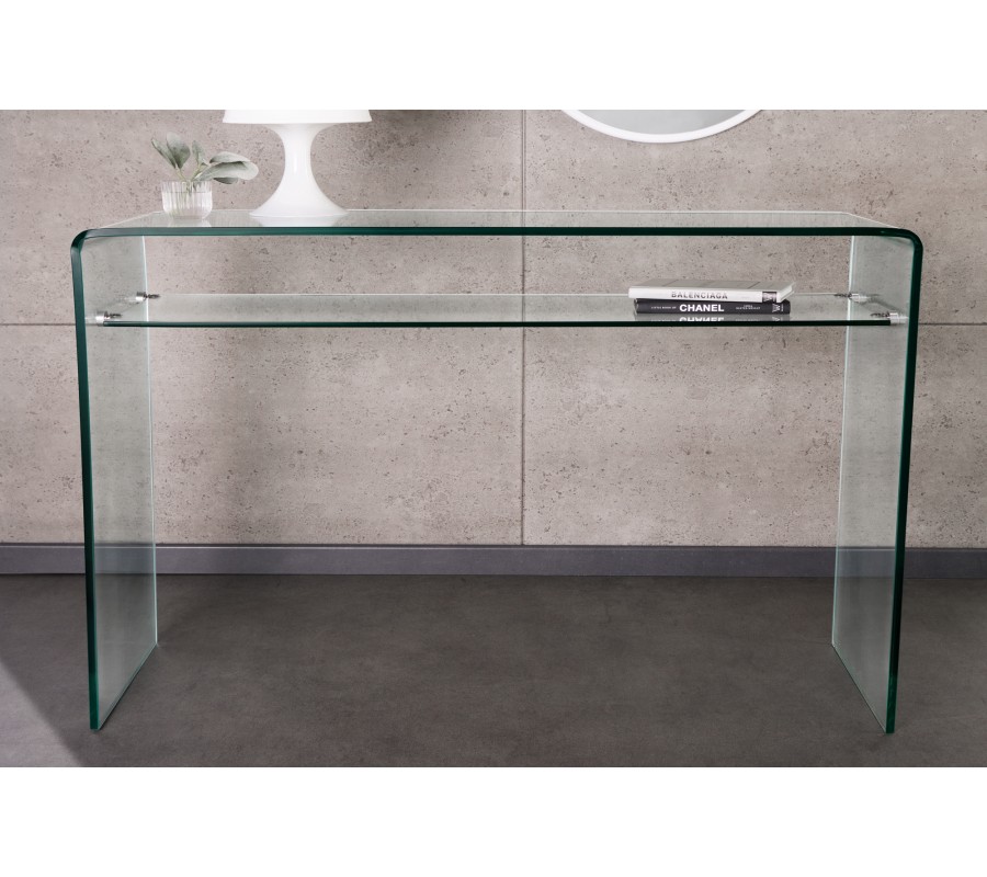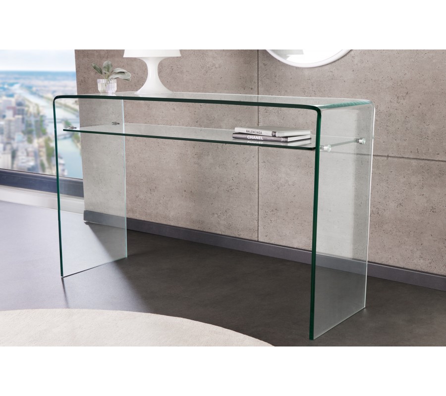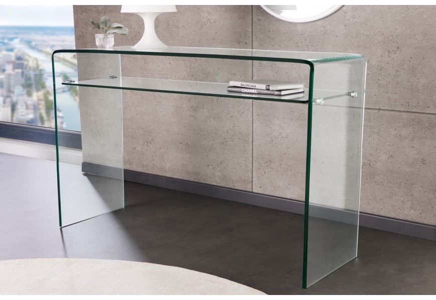 Moderný sklenený konzolový stolík Ghost so zaoblenými hranami a spodnou policou, transparentný 100 cm