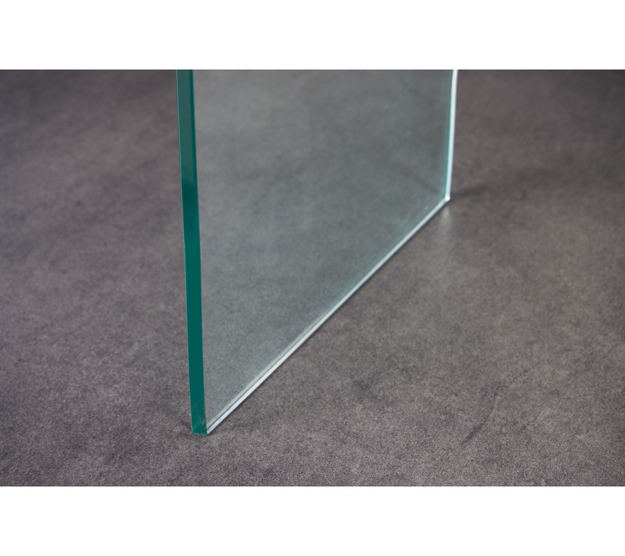Sklenený konzolový stolík Ghost je ideálny do modernej predsiene. Vrchná doska plynule prechádza do bočných panelov cez zaoblené hrany a vytvára efekt tzv. waterfall edge. Praktickým prvkom je sklenená polička. Môžete na ňu uložiť svoje obľúbené dekorácie a drobnosti. Budú neprehliadnuteľné a zároveň chránené vrchnou sklenenou doskou. Stolík je vyrobený z kaleného bezpečnostného skla, ktoré je mimoriadne odolné. Okraje sú zaoblené brúsením, takže sa nemusíte obávať ostrých hrán. Zaujímavým detailom je ich zelené sfarbenie. Do priestoru tak vnesiete farebný akcent, ktorý môžete ešte zvýrazniť ďalšími doplnkami v pastelových zelených odtieňoch. Je ideálnou voľbou do svetlých priestorov, ktoré chcete opticky zväčšiť. Odporúčame ho kombinovať s nábytkom s čistými rovnými líniami a jemnejšími detailami ako tenké nožičky či opierky. Dosiahnete tak moderný prevzdušnený dizajn miestnosti. Konzolový stolík nepatrí len do predsiene, je vhodný aj do modernej obývačky alebo jedálne.