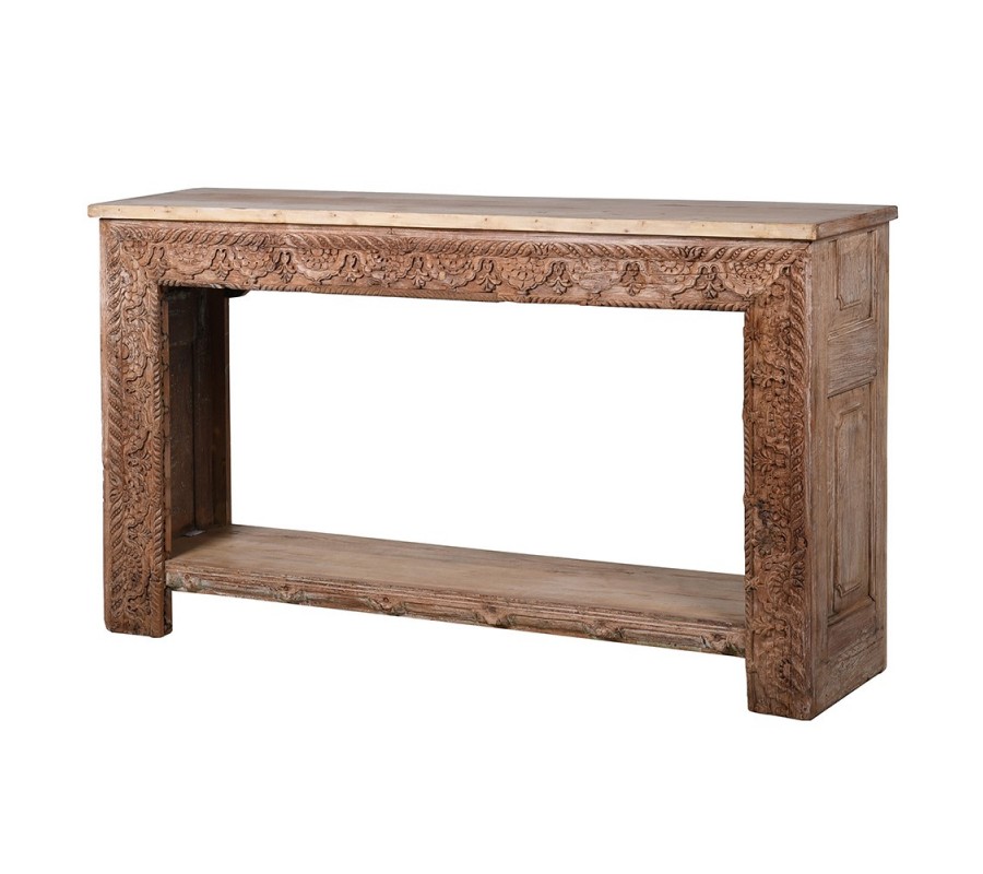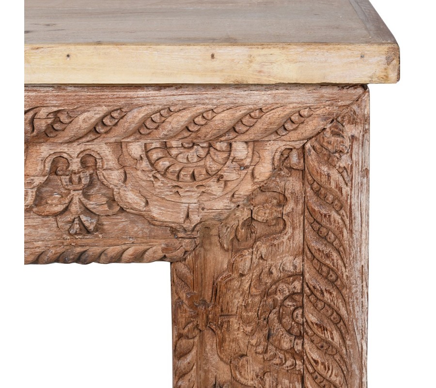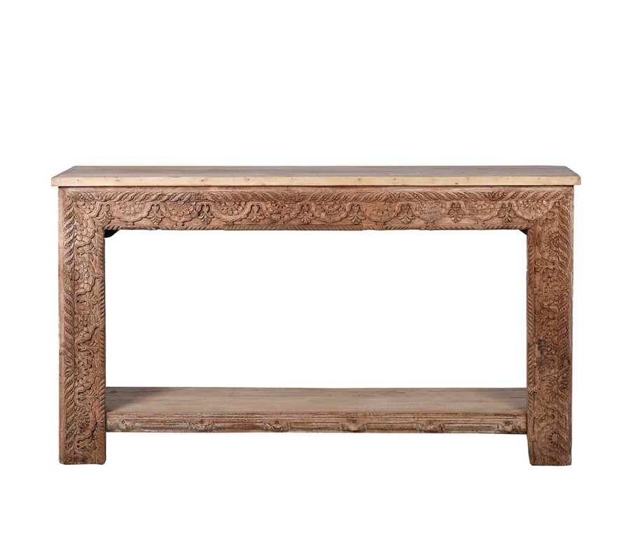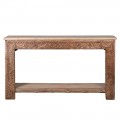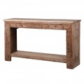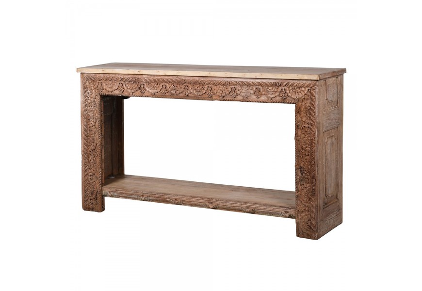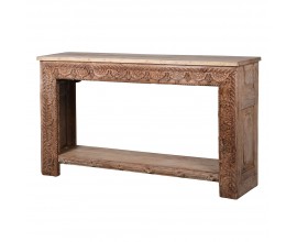 Orientálny masívny konzolový stolík Ayudar v prírodnej hnedej farbe s ornamentálnym vyrezávaním 163cm