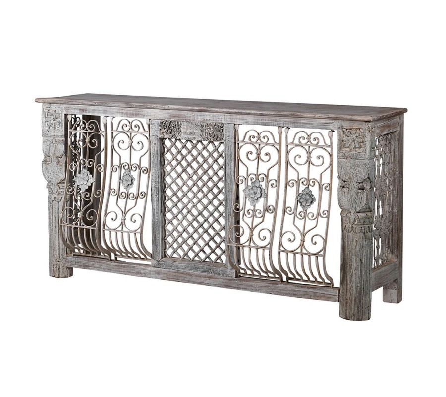 ►Dizajnové a luxusné konzolové stolíky ►Vintage nábytok ►Luxusný orientálny nábytok ►Obdĺžnikový ►S nožičkami ►Kov ►Hnedá ►Sivá ►Drevo / Masív ►Konzolové stolíky z kovu