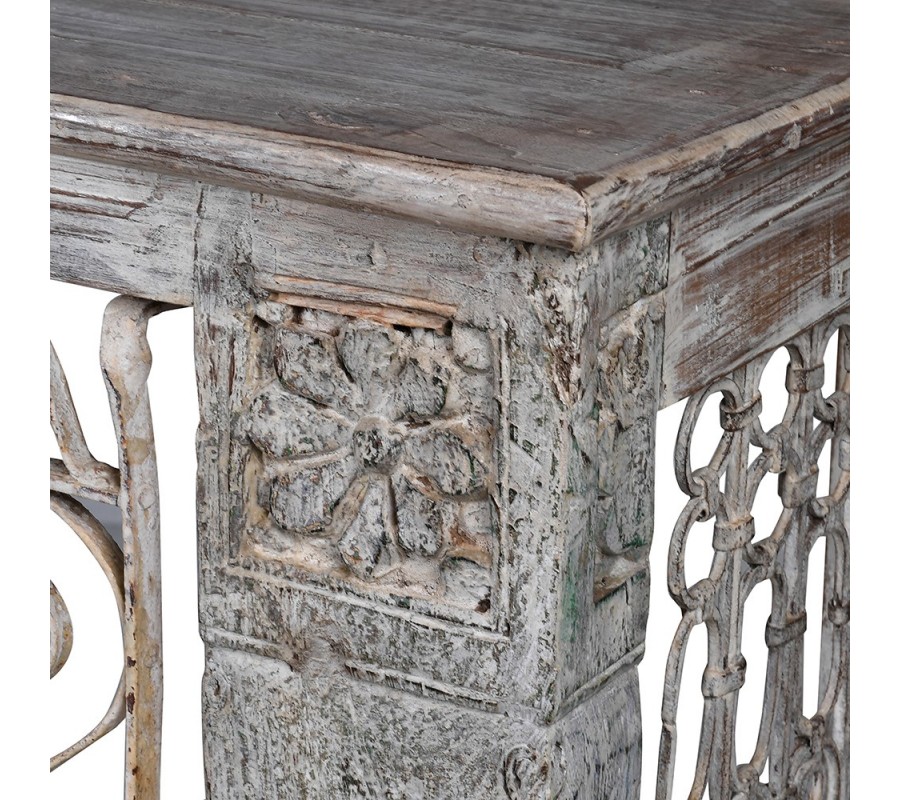 Orientálny vintage konzolový stolík Marianne z dreva a kovu s ornamentálnym zdobením 186cm