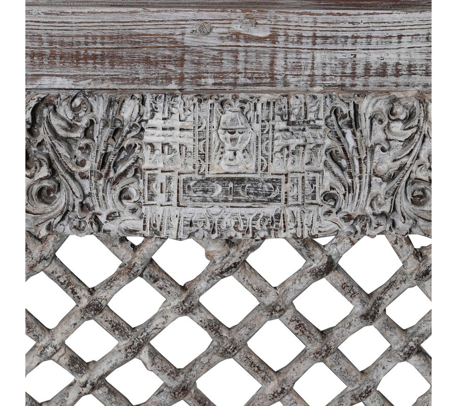 Jedinečnosť konzolového stolíka Marianne spočíva v jehoantickom vzhľade poznačenom históriou a majstrovským umeleckým prevedením. Tento skutočne vintage kúsok je vyrobený z dôrazm na detail a kvalitu, vďaka čomu bude vo vašej domácnosti či reprezentatívnych priestoroch dlho slúžiť a pútať pozornosť vašich návštevníkov. Zaujme najmä svojím esteticky pôsobivým vzhľadom tvoreným detailným ručným zdobením kombinujúcim florálne a abstraktné motívy. Konštrukcia kombinuje materiál masívneho dreva a kovu v svetlohnedom prevedení, pričom povrch dopĺňa výrazná patina umocňujúca jej vintage vzhľad. Konzolový stolík Marianne tak dokonale doplní vintage i orientálne ladené priestory chodieb, vstupných hál či predsiení, kde nádherne vynikne a zároveň prakticky poslúži svojou odkladacou plochou. Možno ju využiť na umiestnenie dekoratívnej vázy s kvetmi, črepníka či stolnej lampy, rovnako ako aj ako priestor na odkladanie predmetov, ktoré chcete mať po ruke! Pre zvýraznenie vintage vzhľadu odporúčame konzolu doplniť vzorovaným koberčekom či nástenným obrazom s ozdobným vyrezávaným rámom!