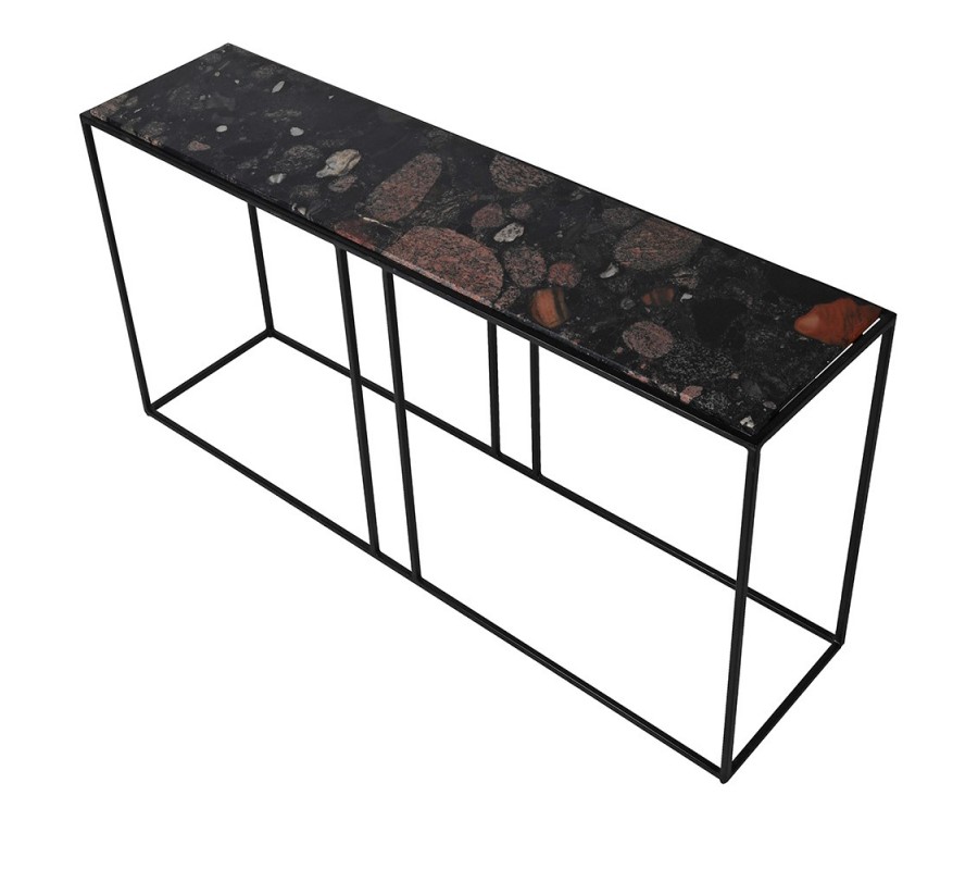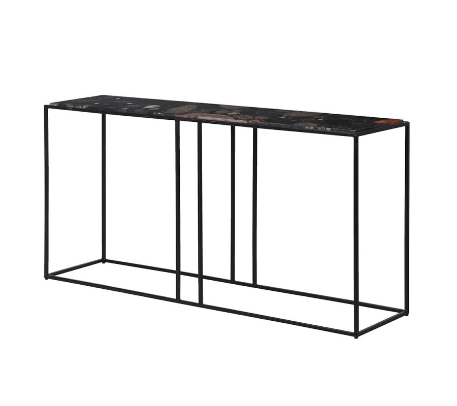 Luxusný moderný konzolový stolík Cosmos s mramorovou vrchnou doskou a železnou konštrukciou čierna 161 cm