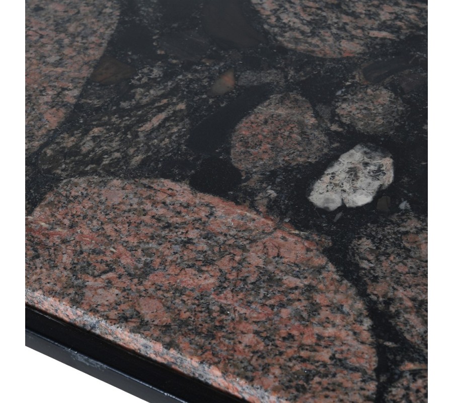 Konzolový stolík Cosmos vás očarí svojou nádhernou vrchnou doskou z čierneho mramoru s prírodnou kresbou v odtieňoch hnedej, béžovej a bielej. Okrúhle tvary sa vynárajú zo základnej farby kameňa a vytvárajú ilúziu okna do vesmíru plného tajomných hmlovín a galaxií. Dizajnu dominujú lineárne geometrické tvary. Rovné čierne kovové nožičky sa na spodnej strane pripíjajú na obdĺžnikovú podstavu. Zaujímavým detailom sú aj dve vertikálne línie v strede dlhších strán stolíka, ktoré vizuálne zapĺňajú spodný priestor. Stolík môžete umiestniť do predsiene spolu s hranatým zrkadlom v čiernom ráme, ktoré sa prepojí s vizuálom stolíka. Je tiež vhodný do moderne zariadenej jedálne či obývačky. Pokiaľ chcete zvýrazniť luxus čierneho mramoru, môžete na stolík umiestniť dekorácie a doplnky v zlatej farbe. Farebne sa hodí do interiérov zariadených v neutrálnych farbách, ako šedá, čierna, či biela. Vytvoríte tak elegantný a nadčasový interiér, ktorý však nie je nudný.