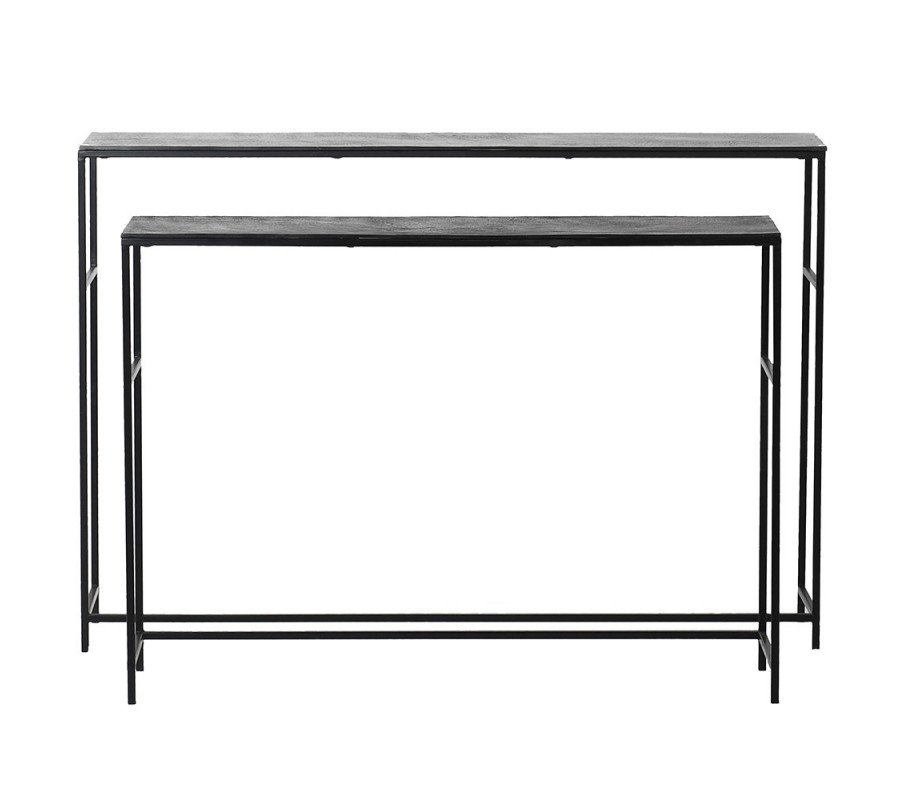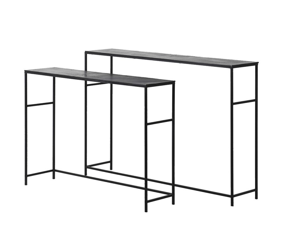 Moderný set dvoch konzolových stolíkov Blackout v industriálnom štýle grafitová čierna farba 120 cm