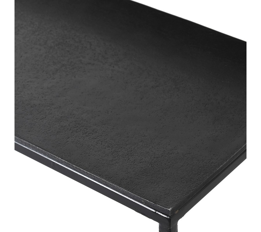 Set konzolových stolíkom Blackout je zosobnením modernej elegancie a čistého priamočiareho štýlu. Dizajn je symfóniou kontrastu lesklých štíhlych línií konštrukcie a matných štruktúrovaných plôch vrchných dosiek. Grafitová čierna farba dodáva dizajnu distingvovanosť a zároveň poskytuje široké možnosti kombinovania. Je len na vás, či preferujete neutrálne odtiene šedej, bielej, či béžovej pre vytvorenie nadčasového dizajnu, alebo univerzálnu čiernu radšej oživíte niečím pestrejším, ako napríklad sedačkou či kreslom s farebným čalúnením a čiernymi kovovými nožičkami. Stolíky sú vhodné aj do interiérov zariadených v industriálnom štýle, kde skvele zapadnú k odhaleným betónovým či tehlových stenám, alebo konštrukčným prvkom v loftoch. Dizajn stolíkov je premyslený do najmenšieho detailu a nebudete sa s ním nudiť. Vďaka z jednej strany otvorenej podstave ich môžete štýlovo zasunúť pod seba, alebo ak chcete maximalizovať vrchnú úložnú plochu, postaviť nezávisle od seba.