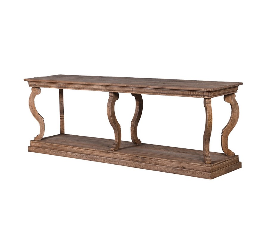 Elegantný konzolový stolík Kahuna je pravým prejavom klasického šarmu a nezameniteľného vkusu. Jeho pevná a zároveň graciózna konštrukcia je vyhotovená z kvalitného masívneho dubového dreva, ktorého prírodné odtiene a textúry sú prepracované do jedinečného dizajnu. Hlavnou vlastnosťou tohto konzolového stolíka sú jeho nohy, ktoré sú majstrovsky tvarované v klasickej lýre. Tento historický motív dodáva stolíku nielen vizuálnu eleganciu, ale aj pocit tradičnej remeselnosti. Spodná polica poskytuje dodatočný úložný priestor, ideálny na umiestnenie kníh, dekoratívnych predmetov alebo iných nevyhnutností, čím umožňuje udržať hladký a uprataný vzhľad vrchnej dosky stola. Vrcholná doska stolíka, široká a priestranná, ponúka dokonalú plochu na zobrazovanie rodinných fotografií, umeleckých diel, kvetinových aranžmánov alebo akýchkoľvek dekoratívnych predmetov, ktoré chcete vystaviť. Jej hladký povrch je príjemný na dotyk a zároveň odolný voči každodennému používaniu. Či už je umiestnený v hale, v obývacej izbe alebo v študovni, tento konzolový stolík pridáva k elegancii a funkčnosti vášho domova.