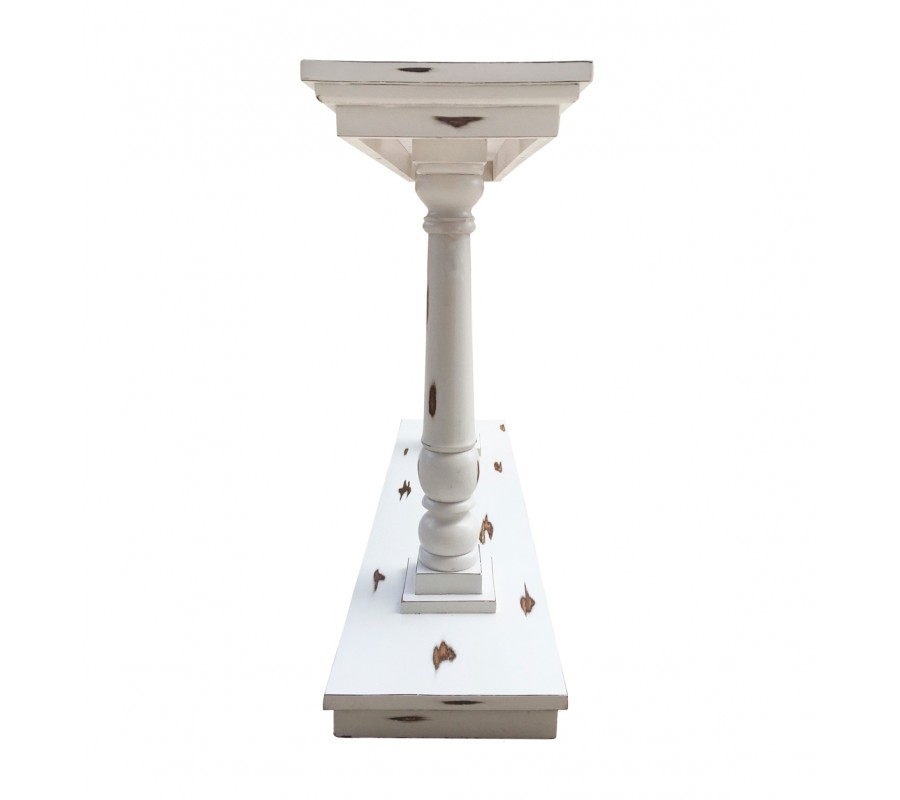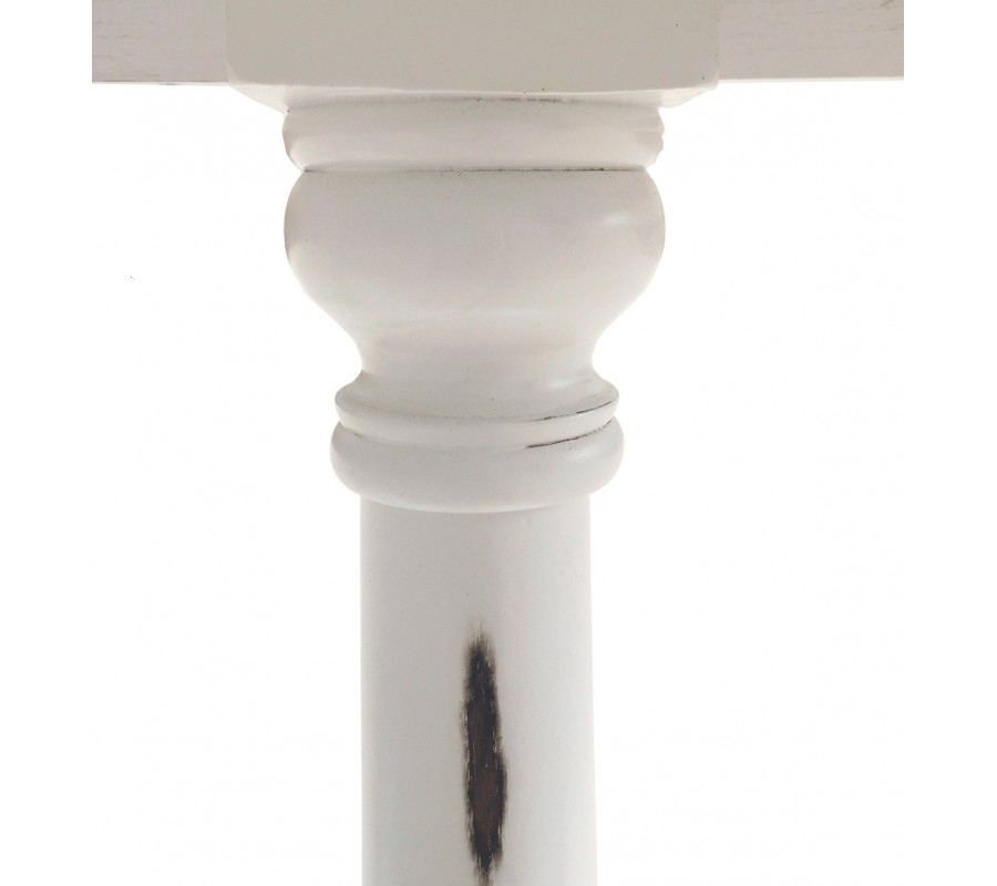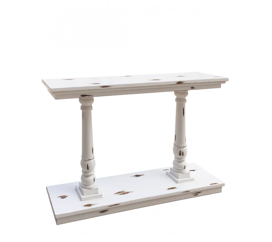 Masívny vintage biely konzolový stolík Bianca so zámerne zošúchaným náterom a dvomi nožičkami s dizajnom stĺpov 130 cm