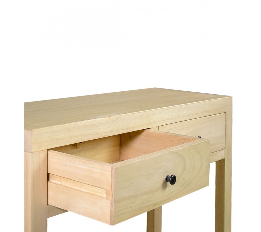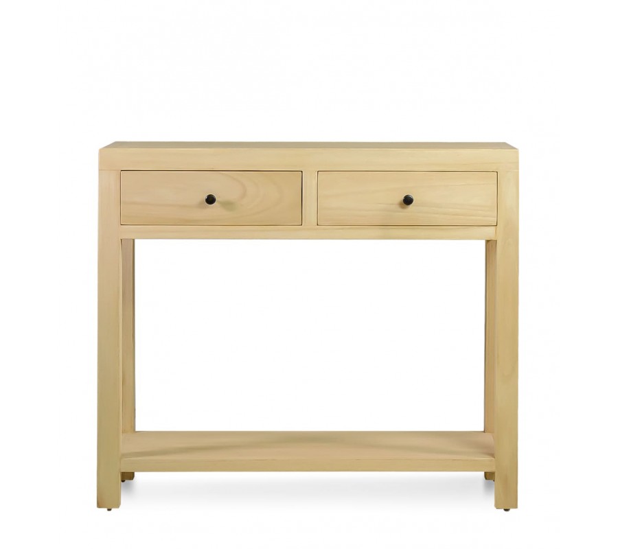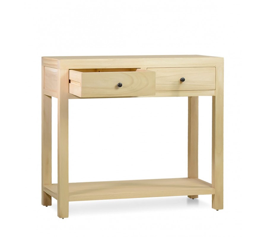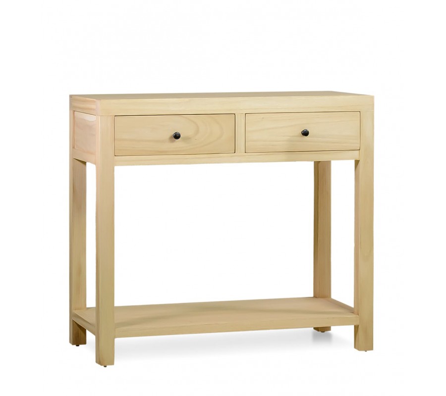 Masívny škandinávsky konzolový stolík Arne s dvomi zásuvkami a policou v svetlej hnedej farbe 90 cm