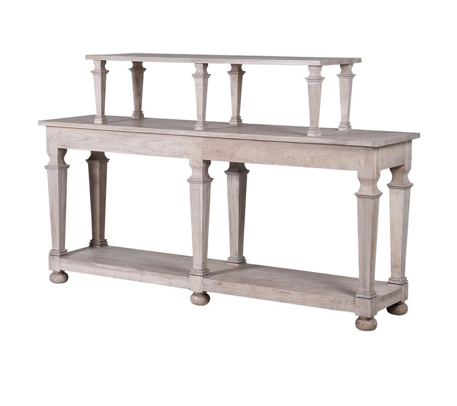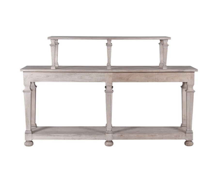 Luxusný rustikálny konzolový bufetový stolík Nature s poličkou navyše v béžovej farbe s vyrezávaným zdobením 200 cm