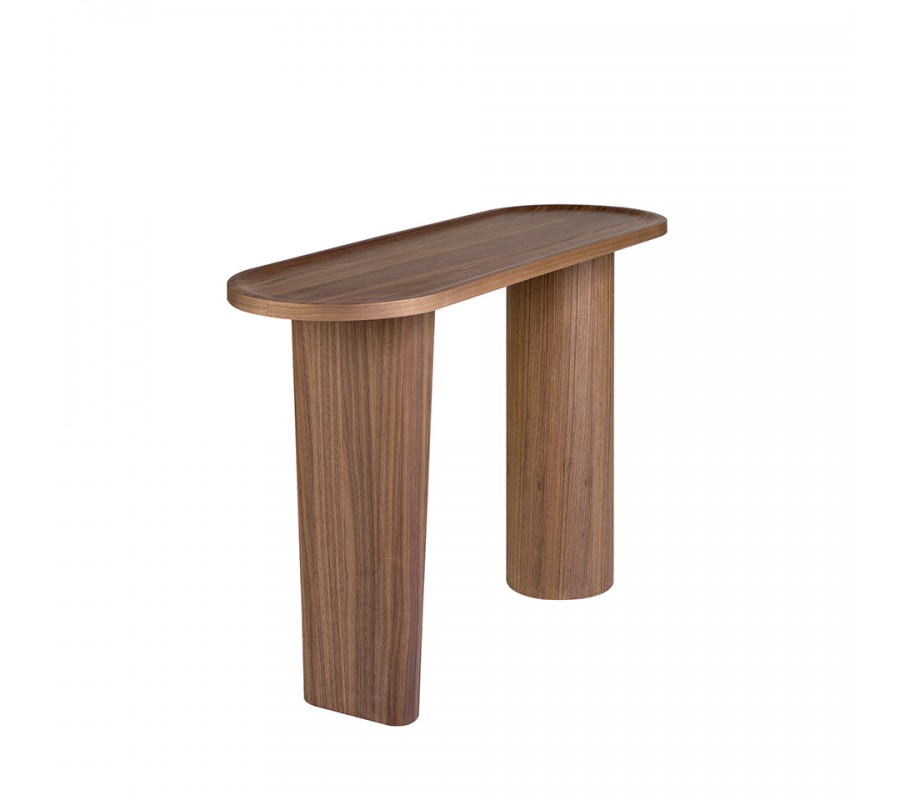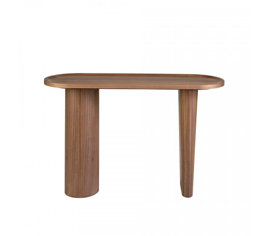 Luxusný moderný oválny konzolový stolík Vita Naturale s dizajnovými asymetrickými nožičkami v orechovej hnedej farbe 120 cm