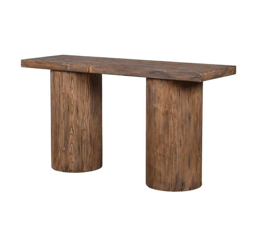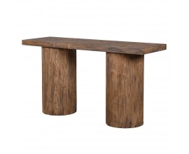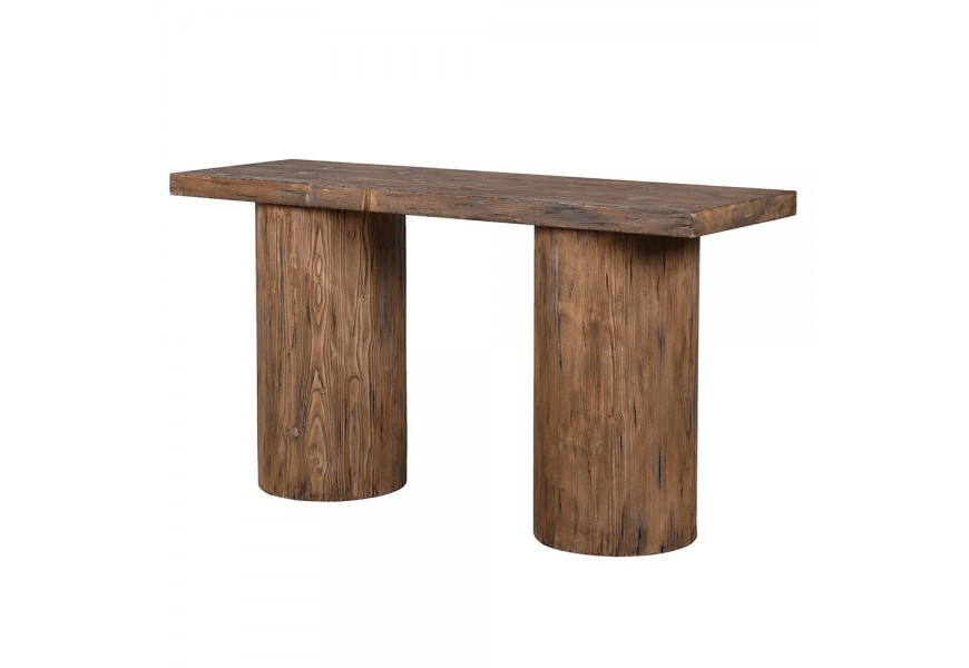 Luxusný masívny konzolový stolík Jailin s dvomi valcovitými nohami v teplej hnedej farbe s výraznou štruktúrou dreva 160 cm