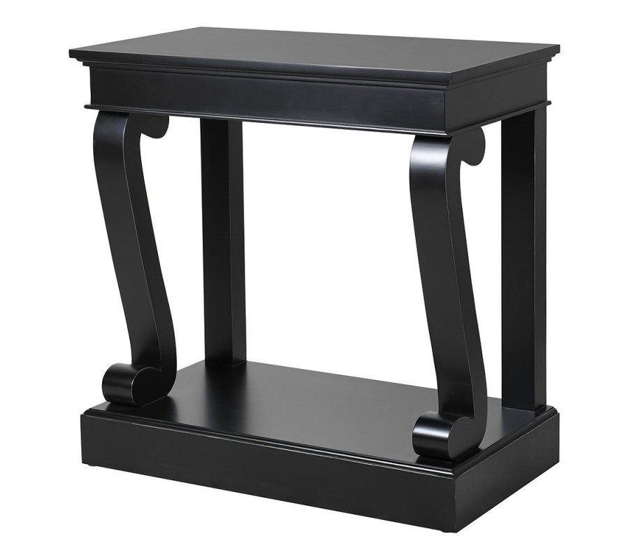 Elegantný rustikálny čierny konzolový stolík Delrico s dizajnovo zaoblenými nožičkami 90 cm